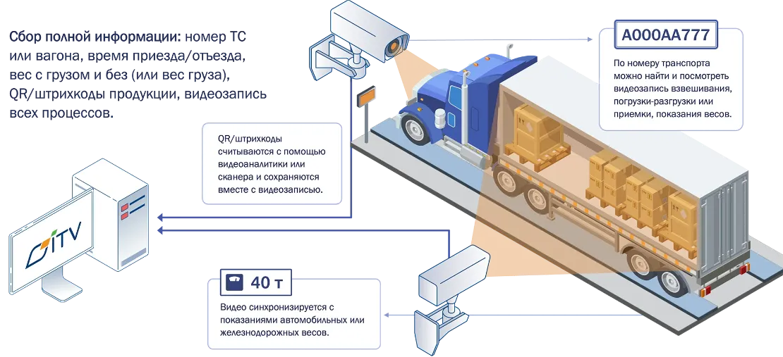 Контроль въезда: доступ по номеру, RFID и их комбинациям. Видеофиксация и привязка к идентификатору ТС. Интеграция с досмотром днища. Распознавание марки, модели и цвета авто для поиска по видео.